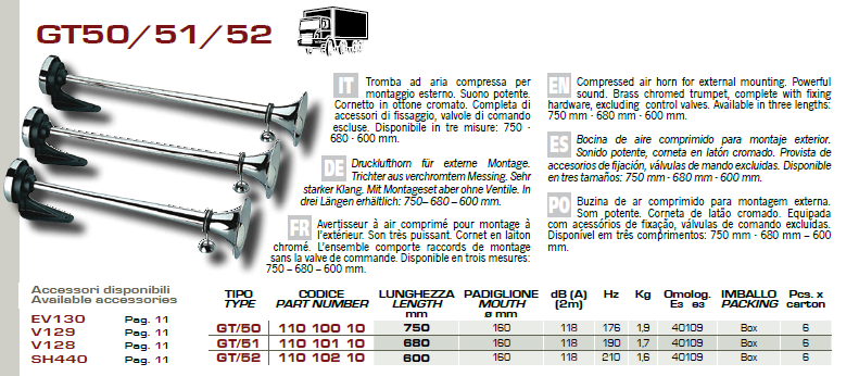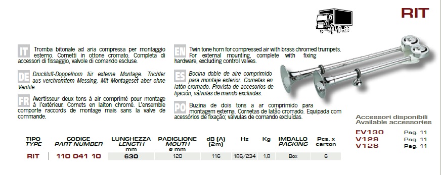 TROMBA CAMION ARIA COMPRESSA 24 VOLT A UN CORPO DA 60 CM